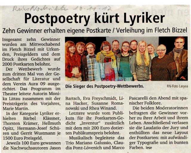 Unterstützung des Landes und der Kunststiftung den Postpoetry-Lyrikwettbewerb